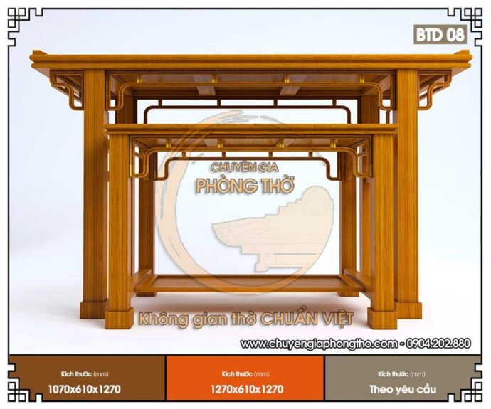 Mẫu bàn thờ đứng mẹ con gỗ gõ đỏ hiện đại kích thước 1270 x610x1270: BTD08